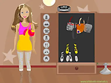 Arrange a party. The room is a fashionable wardrobe in which a lot of fashionable clothes. Change clothes in beautiful dresses.