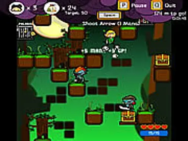 Move downwards as you rescue characters in cages to gain their abilities to kill enemies.