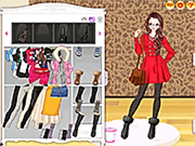Great taste of winter, white veil, step skirt, big coat, beautiful winter.