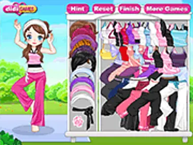 Dress up this beautiful yoga trainer before she starts her yoga class.